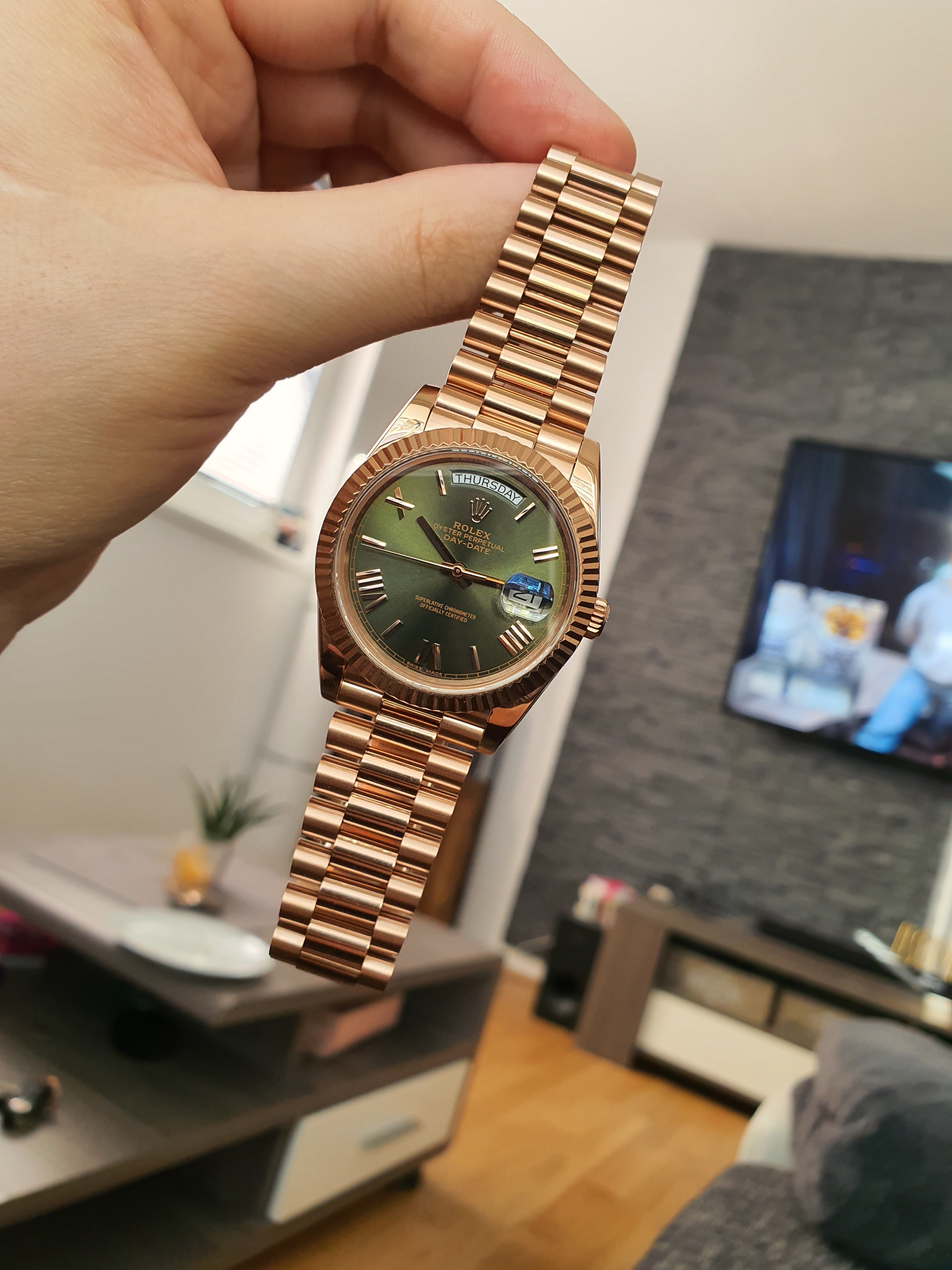 Contemporary design is showcased with this complimentary rose gold and olive. Rolex 40 mm day date ,rose gold machine: The safest path to your dream watch.